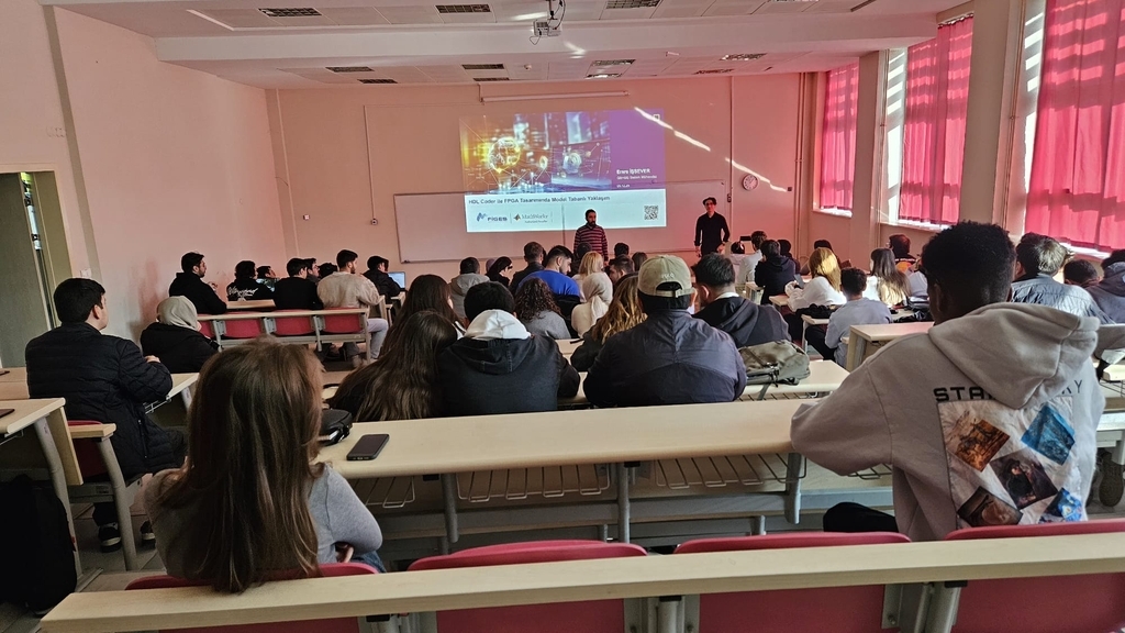 The technical training seminars organized by Bartın University’s Department of Electrical and Electronics Engineering, in collaboration with FİGES and MathWorks, were held on December 4, 2025, and drew strong participation. Focusing on MATLAB, Simulink, FPGA design, and model-based design, the event aimed to enhance the competencies of students and academic staff in the use of engineering software tools.