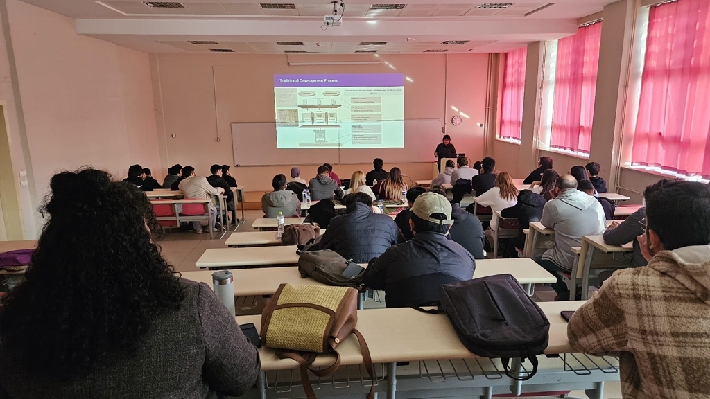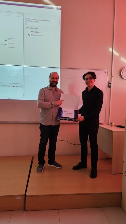 In the afternoon session, Embedded Systems Engineer Emre İşsever delivered a presentation titled “FPGA with MATLAB.” He shared insights on the use of HDL Coder, automatic HDL code generation, and Simulink-based hardware-compatible modeling processes. The practice-oriented training attracted considerable interest from students interested in FPGA design.