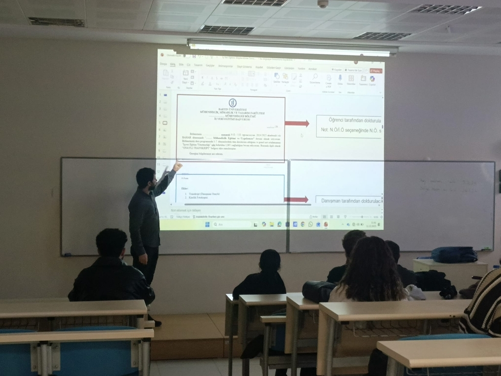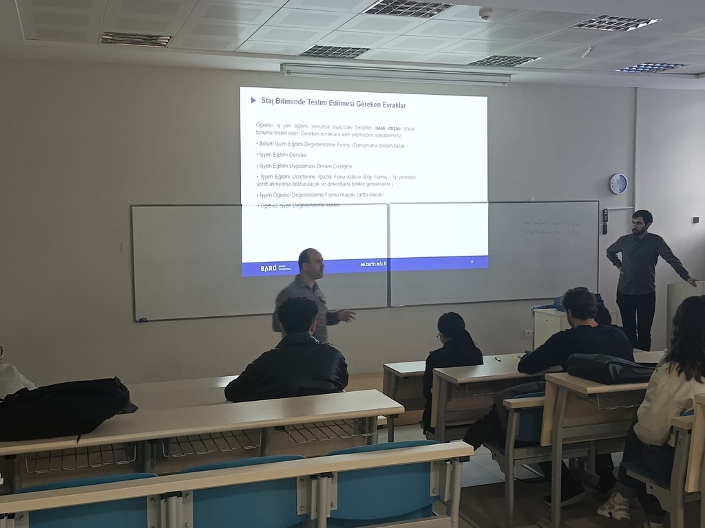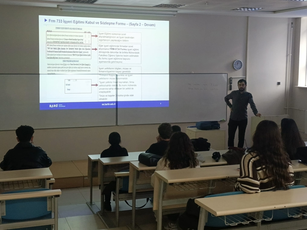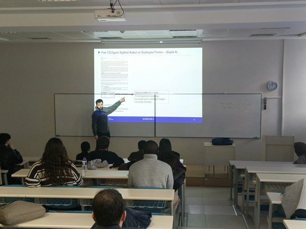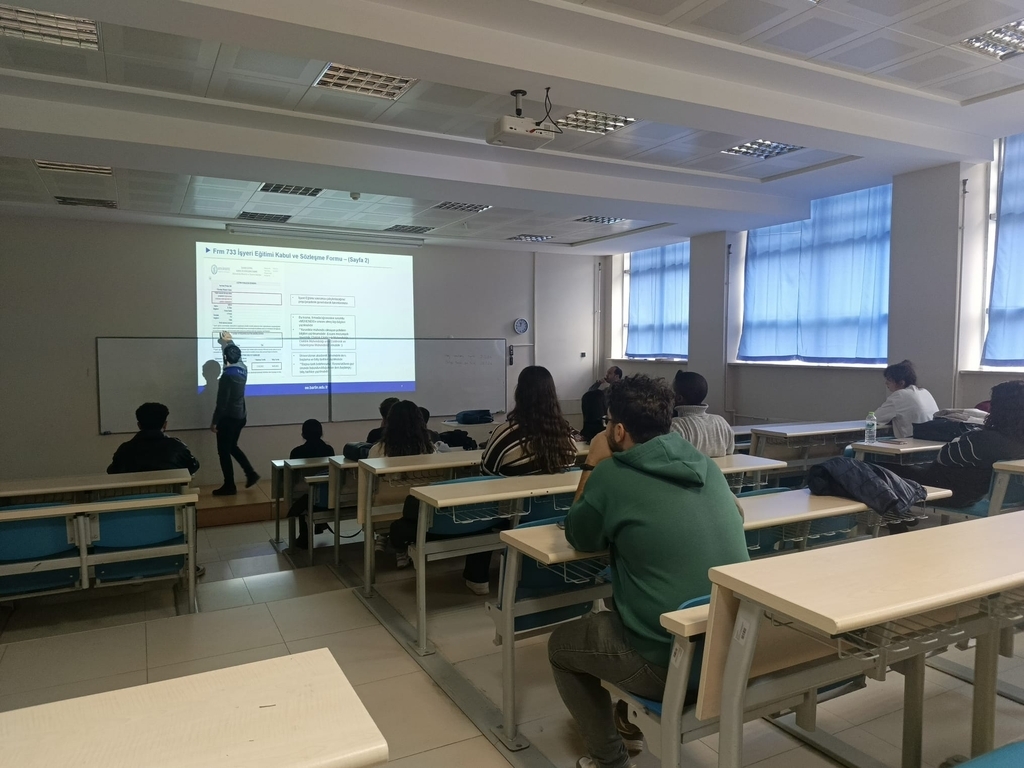 The 7+1 Workplace Training information meeting was held. During the meeting, information about the process was provided, and the questions raised were answered. Our students can access detailed information about Workplace Training from the presentation attached or through the student–workplace training section.